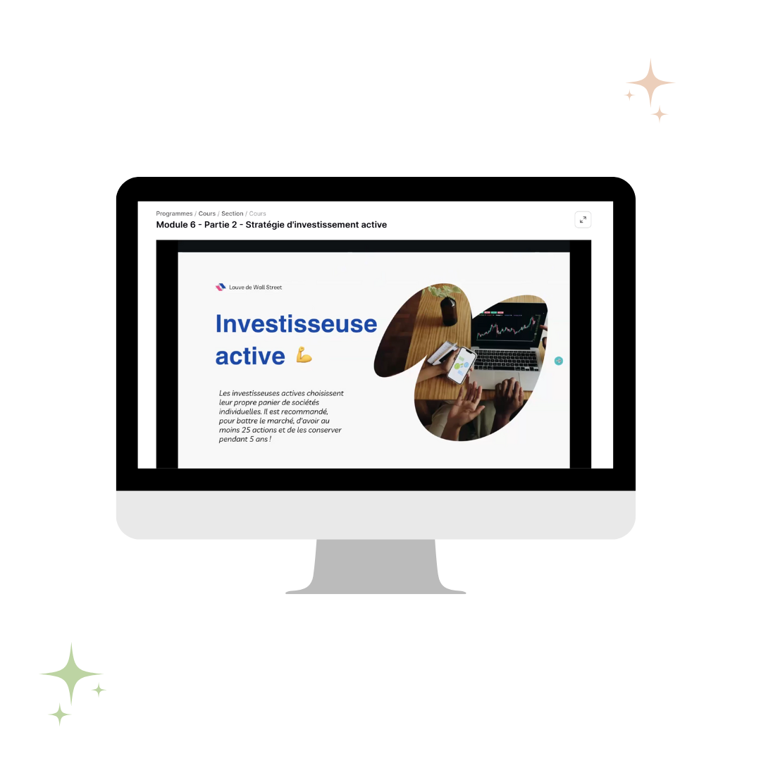 â Suivre un systĂšme clair, Ă©tape par Ă©tape, super simple Ă comprendre, qui te guide dans le grand monde de l'investissement.
