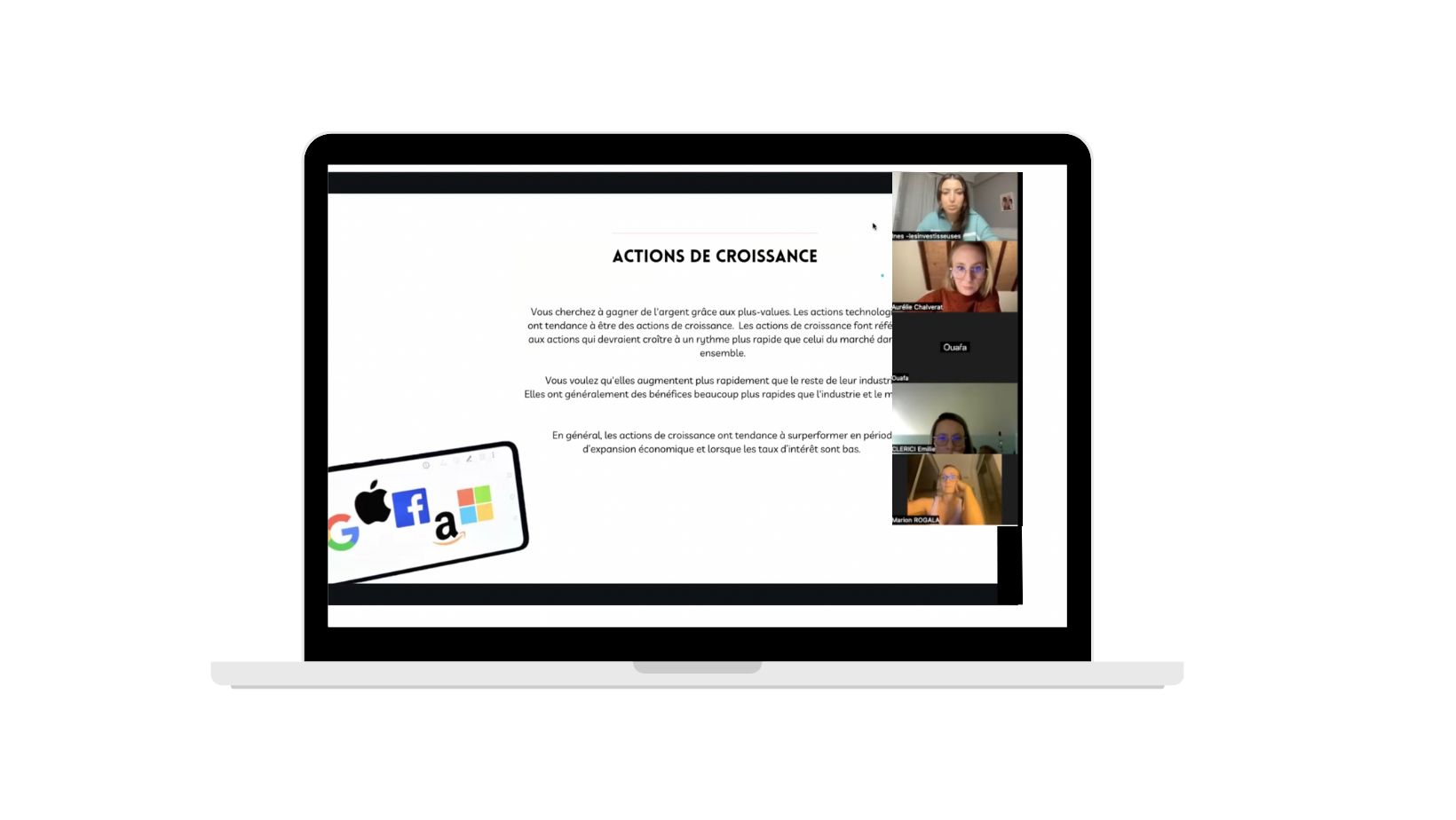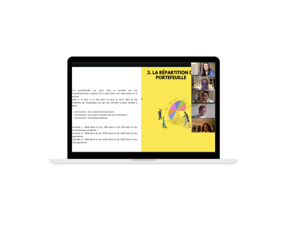 Nous ne proposons pas de services de conseil en investissement. Le contenu diffusĂ© dans le cadre du programme est fourni Ă titre informatif et vise Ă transmettre des connaissances gĂ©nĂ©rales. Il ne sâagit en aucun cas dâune orientation personnalisĂ©e ou adaptĂ©e Ă une situation particuliĂšre. Chaque participante est invitĂ©e Ă prendre le temps dâĂ©valuer, en toute autonomie, la pertinence des outils ou produits Ă©voquĂ©s en fonction de ses objectifs et de sa situation financiĂšre. Si un accompagnement sur-mesure est souhaitĂ©, une mise en relation avec une experte en gestion de patrimoine pourra ĂȘtre envisagĂ©e, dans le cadre dâune prestation complĂ©mentaire.